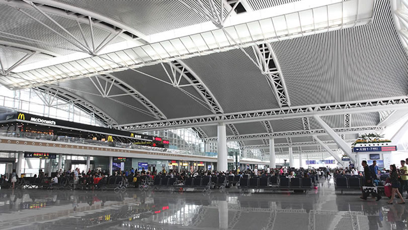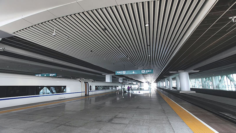 廣州站位于廣州市番禺區,2009年建設,寶鋼熱鍍鋅彩涂做屋面板,顏色為深棕褐,涂層品種PE聚酯,鍍鋅量180克/平方米,牌號為TDC51D。