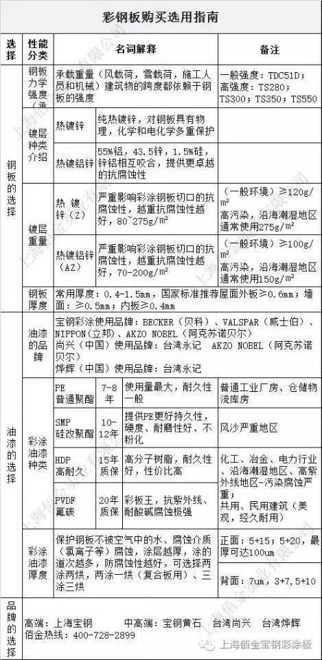 風(fēng)雪載荷主要是考慮建筑物的安全系數(shù)。這盡管和彩鋼板的力學(xué)性能有關(guān),但更多的和壓型鋼板的板型、厚度以及板與板之間的連接有關(guān)(關(guān)于鋼板材料的推薦在發(fā)展趨勢中描述)。而定量描述一個地區(qū)的腐蝕環(huán)境相對困難。影響彩鋼板的腐蝕因素有很多。下面我們具體來了解下彩鋼板購買時的選用指南。