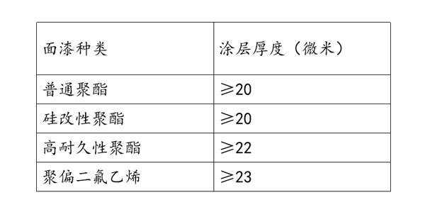 ③配合耐久性高的涂層,寶鋼對該類彩涂鋼板的最低鍍層重量也進行了限制,例如氟碳產品熱鍍鋅鍍層重量不小于110g/m2,鍍鋁鋅鍍層量不小于75/75g/m2