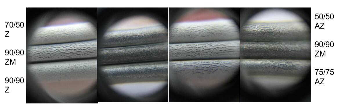 1. CQ級(jí)別三種鍍層成份不同鍍層重量,鍍層裂紋均可見,裂紋程度一致;