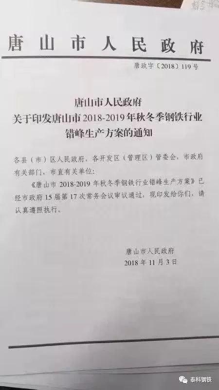 唐山秋冬季鋼企錯峰生產方案正式發布,限產產能1859.22萬噸