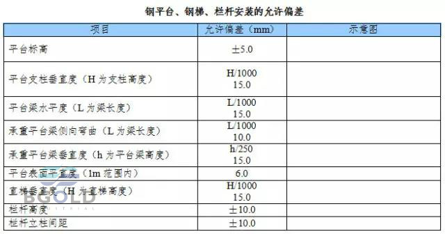 (4) 平臺、梯子和欄桿安裝的允許偏差應(yīng)符合下表規(guī)定。