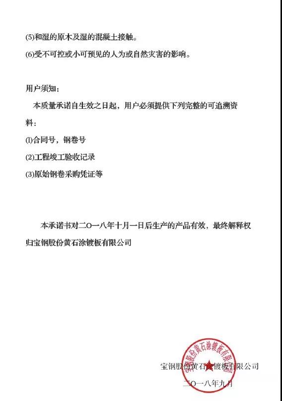 熱鍍鋁鋅20年產(chǎn)品使用承諾書(shū)