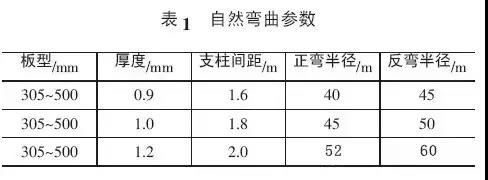 彎弧板機器正彎、反彎參數,見表2。